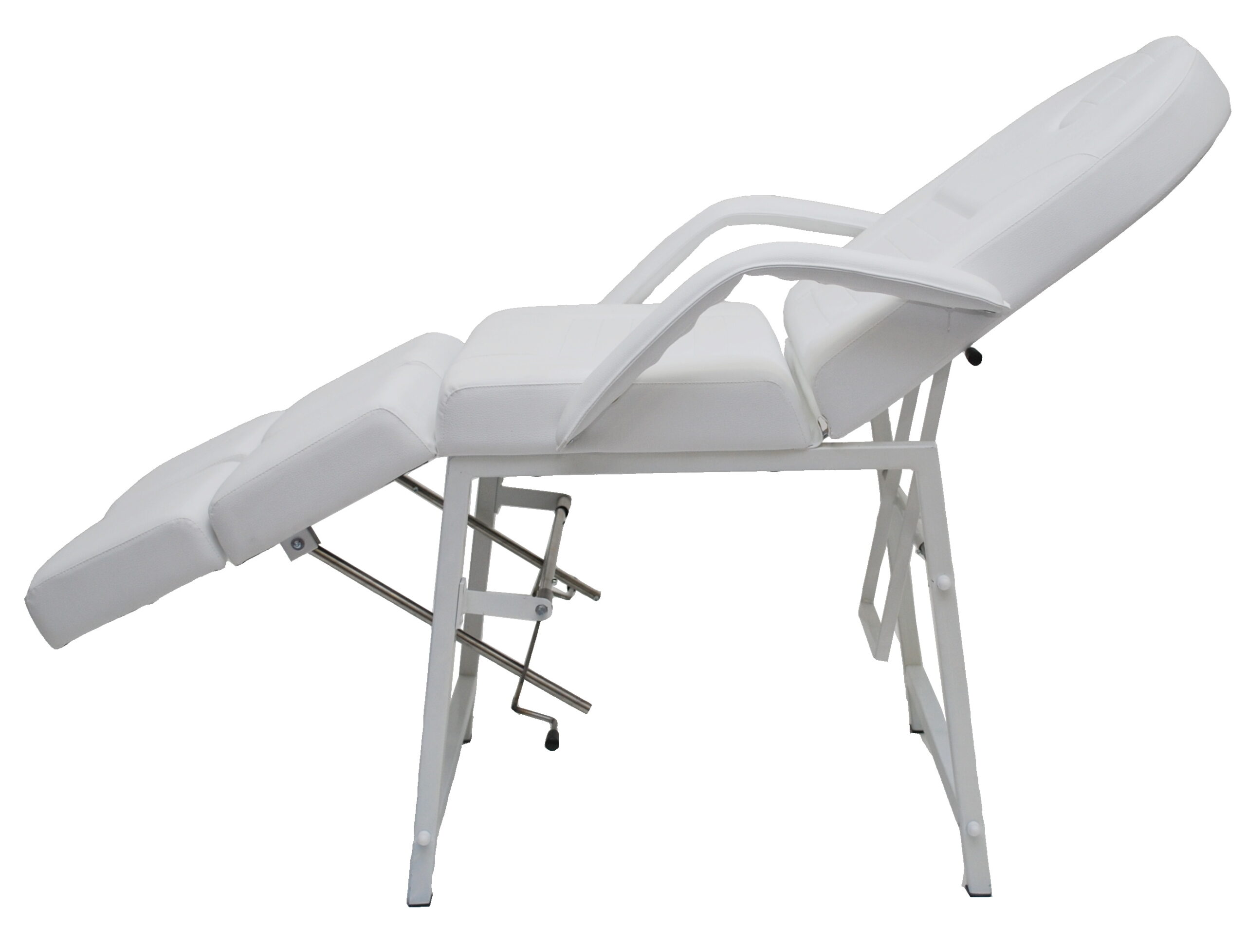 E’ dotata di aste autobloccanti per la regolazione dei cuscini e di foro viso e cuscino per coprire il foro facciale. La struttura è in metallo verniciato e l’imbottitura è rivestita in skai. È completo di braccioli estraibili a distacco rapido, per garantire la massima praticità, dotato di pompa idraulica con freno. Dimensioni : (80 x ( 90-185) x 72) L x P x A Colore :  Bianco Struttura in metallo verniciato L’imbottitura è rivestita in skai.
