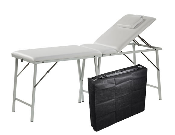 Schienale reclinabile è completo di foro per il viso per garantire il massimo comfort sia al cliente che all’operatore. La struttura portante è in alluminio e l’imbottitura è rivestita in skai.